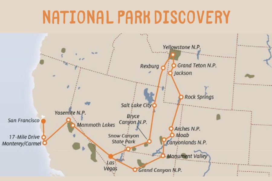 A “best of the West” escorted tour that combines the region’s most iconic National Parks: from the Grand Canyon to Monument Valley, from Utah’s red-rock wonders to Grand Teton and Yellowstone, then Bryce and Snow Canyon, the Sierra Nevada with Yosemite, and finally the Pacific Coast leading to San Francisco.
